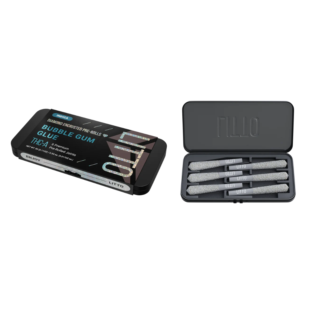 LITTO Bubble Gum Glue Diamond Encrusted pre-rolls are perfect for a premium, exclusive experience. Filled with an incredible Indica blend made from the finest hemp flower, and encrusted with diamonds, Bubble Gum Glue is the perfect treat for Indica lovers who crave cozy tastes and effects.