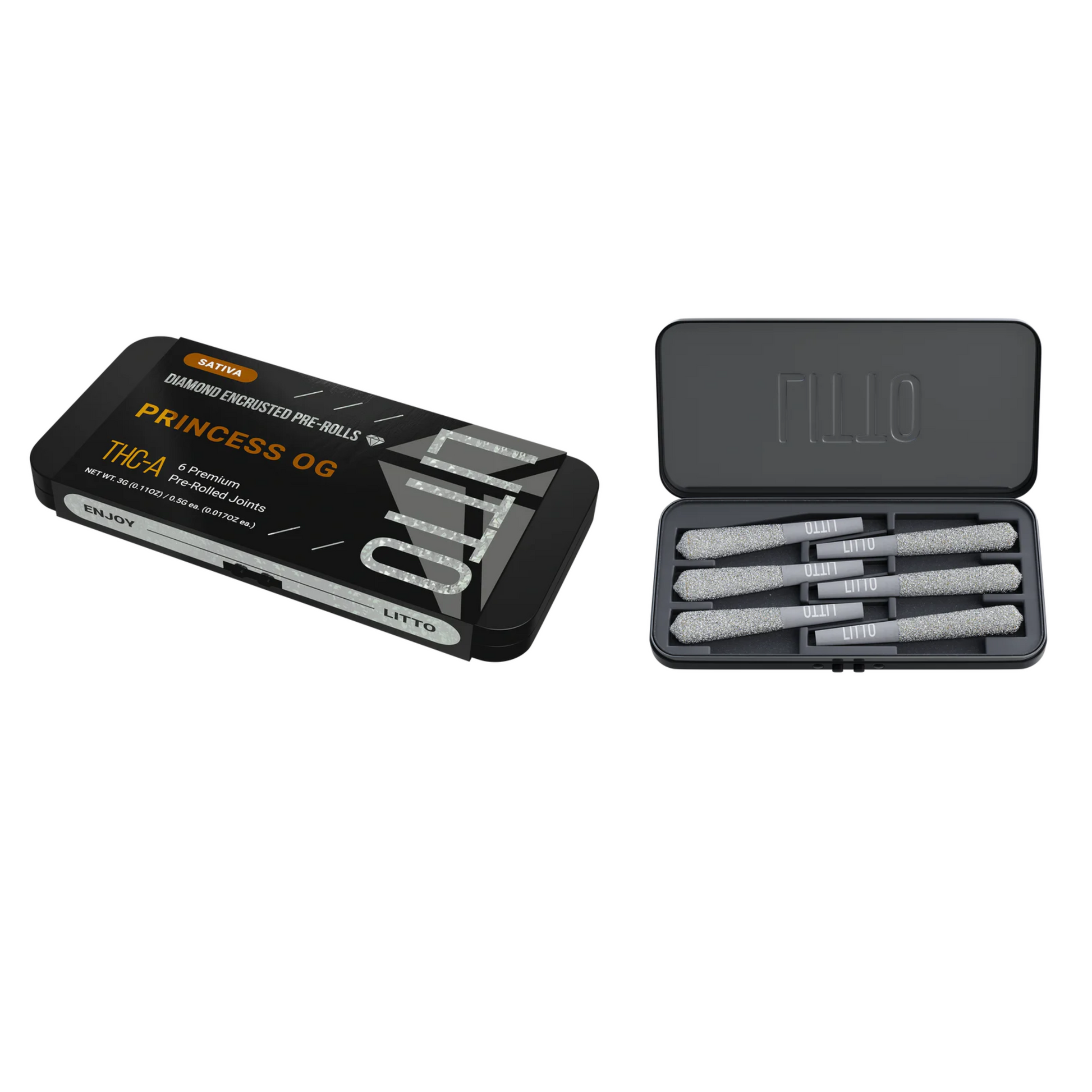 Enjoy princess treatment with LITTO Princess OG, a Sativa strain that hits - with grace! You’re in for a full mind-body experience with these pre-rolls, made even better with their diamond dusted coating that gives you a royally luxurious high!