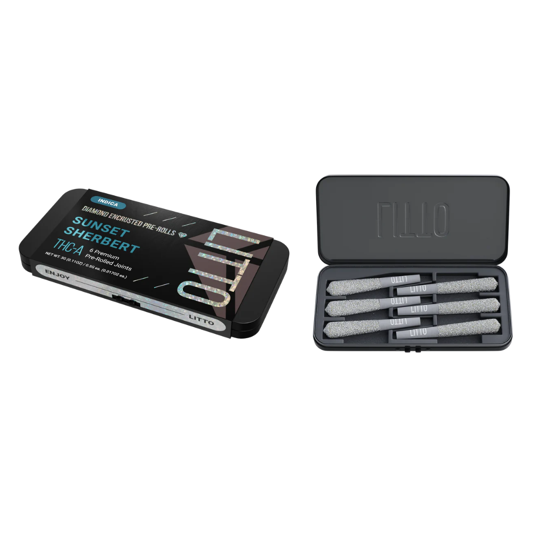 Did anybody call for a picnic? Grab a blanket and cuddle up during sunset with LITTO Sunset Sherbert Diamond Encrusted pre-rolls! These unique Indica pre-rolls have an amazing effect, handcrafted with top-grade hemp flower and coated with premium diamonds, so prepare to take your experience to the next level!